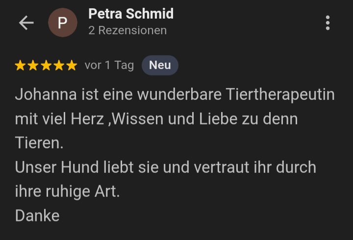 Warst du/waren Sie zufrieden mit meiner Behandlung? Dann freue ich mich über eine Bewertung bei Google.
